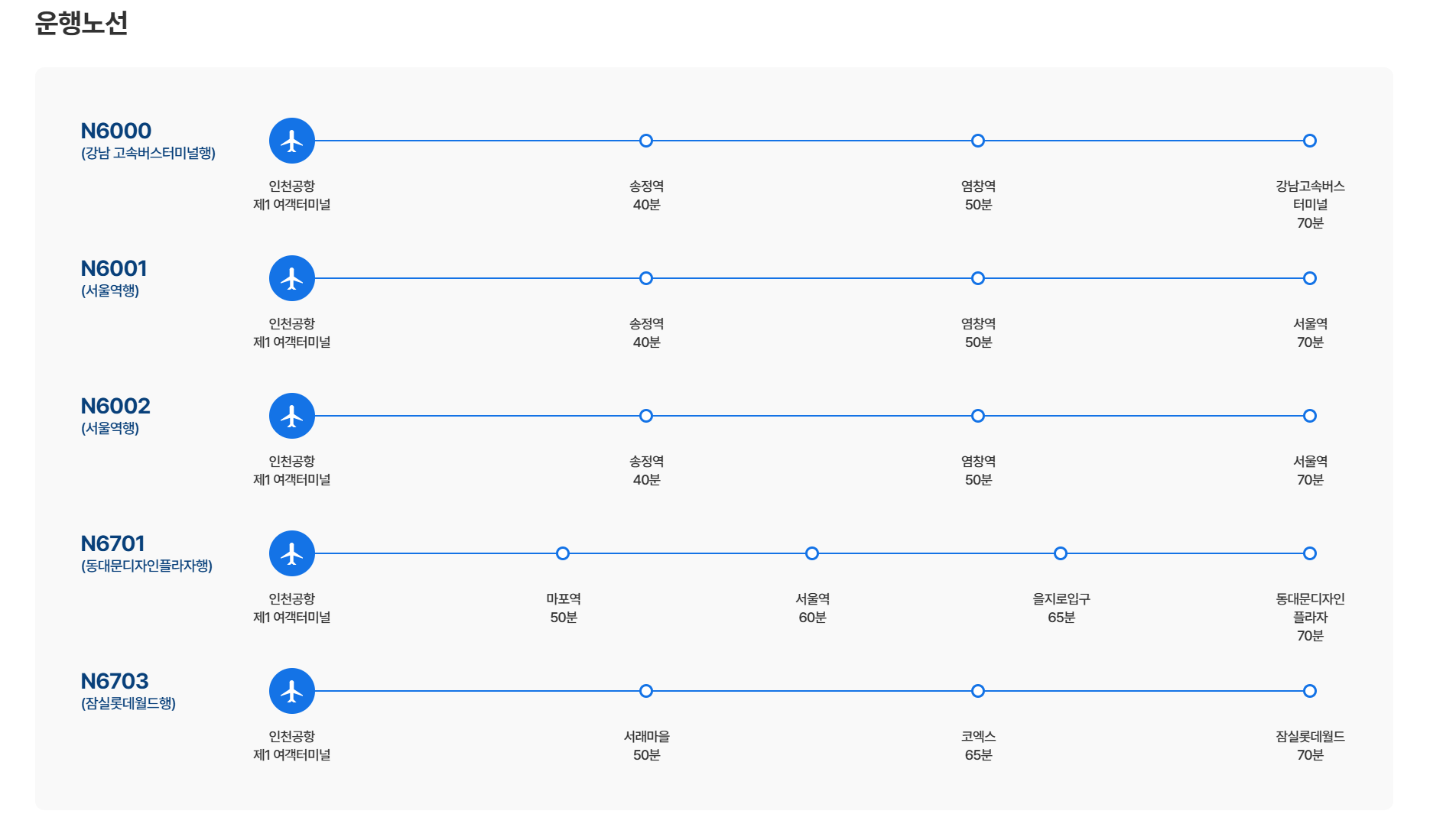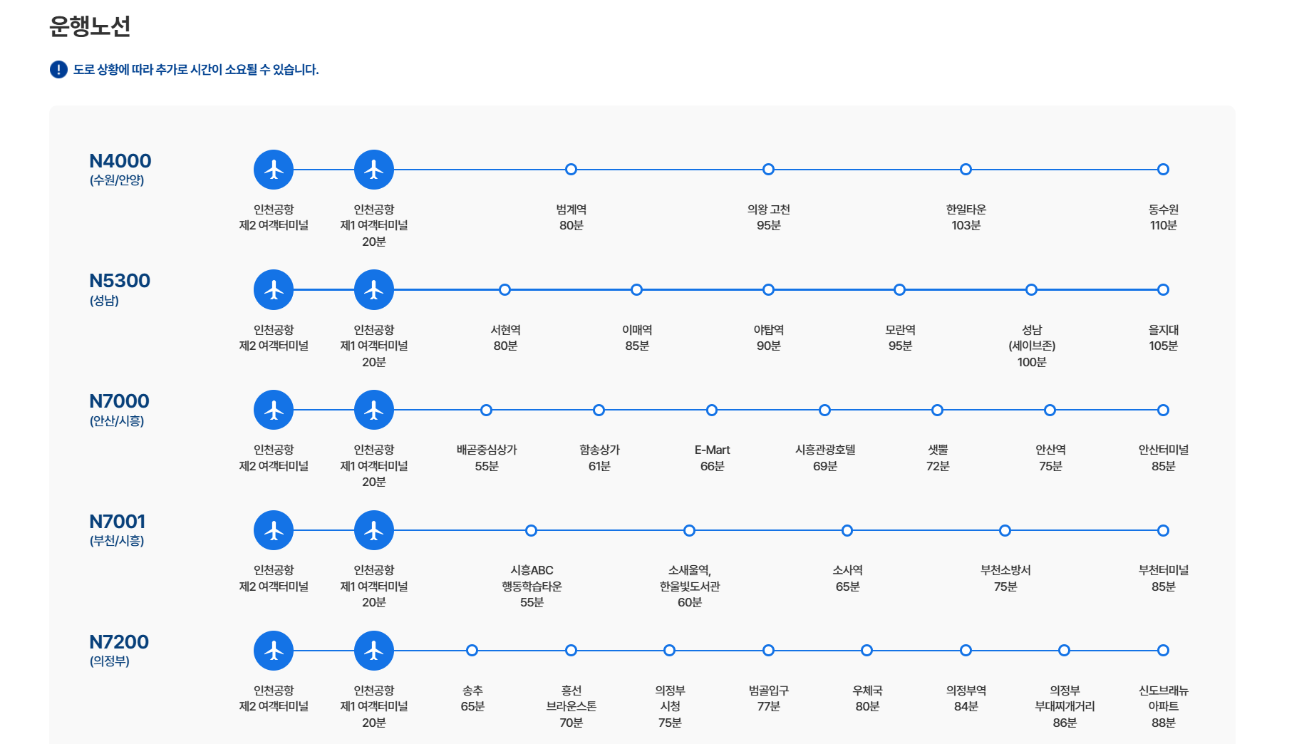 *인천공항에서 출발 대중교통 예약시 항공기 도착 후 입국 소요시간(1-2시간)을 고려하여 예약하시기 바랍니다.